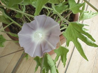 2000年の夏、最初に咲きはじめた花です。州浜と鼻葉の複合葉形で、その形