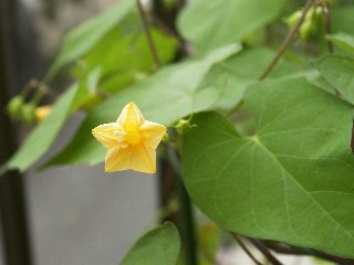 ヒルガオ科の黄花となれば、こちらのマルバルコウの黄花種は外せません。ようやく種子を入手できたため、期待して育ててみましたが、開花も早く花色も澄んだ黄色で、黄花イポメアなどとは違った美しさがあります。花径が1.5cmほどと小さいのは残念ですが、多花性で次々咲くのは良いところです。どうも夏は高温で花弁が充分に開かなかったのですが、秋口になり涼しくなると綺麗に開花するようになりました。種子も予想以上に大量に採れましたが、悲しいかな雑草に近いことを思い出させてくれます。
