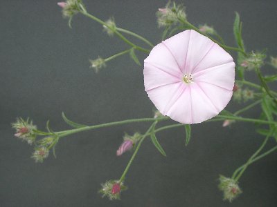 宝塚市の園芸店でコンボルブルス・カンタブリカとして売られているのを見つけて購入しました。国内では初の販売かとも思うのですが、さりげなく売られている辺りが、さすが園芸の街でもある宝塚の凄さです。調べてみると、ヨーロッパ原産の多年生植物とのこと、アサガオの近縁種とは思えないロゼット状の株から伸びた細長い枝の先に3cm程のピンクの花を咲かせます。