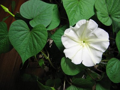 ○ヨルガオ 久しぶりに育ててみましたが、やはり夜の闇の中に大輪の白花がポッカリと咲く姿は神秘的に感じられるものがあります。アサガオなどに比べると種子が大きくて堅いため、発芽しやすくするため小さなキズを入れるのは一苦労ですが、こうして咲くと嬉しいものです。