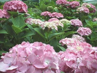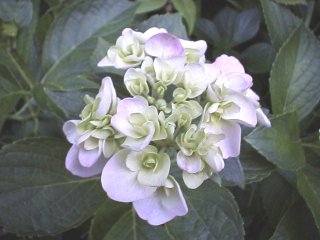 こちらは、八重咲きで遅咲きのアジサイです。名称ははっきりしないのですが、古くからある品種のようで、