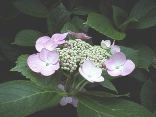 アジサイは周辺の花だけが大きな飾りを持つ、こちらのガクアジサイが原種です。
