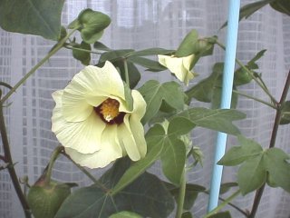 木綿の原料となるワタは、同じ科のトロロアオイに似た薄黄色の美しい花を咲かせます。