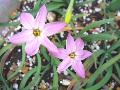 雑草化もしているハナニラ(イフェイオン)のピンク色の園芸品種です。珍しい品種として宝塚の園芸店で購入しましたが、球根も良く増えるので、すぐに普及するのではないかと思っています。