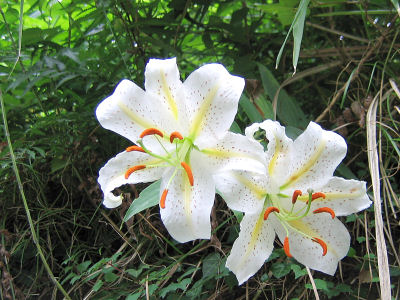 旅先で出会ったヤマユリの花です。最近ではオランダなどで交配されたオリエンタルリリーが花屋さんでも主流ですが、