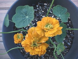 下のマーガレット・ロングと同様に、ナスターチウムが牡丹咲きになったものです。ダージリン・ダブルという品種で、