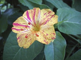 白や黄色に赤色、絞りもあって大変美しいものです。夕方にならないと咲かないためか、あまり人気がないのは残念です。