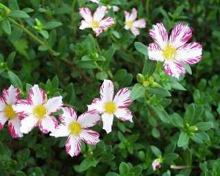白地に赤の絞りが入ったポーチュラカですが、絞りが非常に安定しています。絞り咲きとしては、これ以外にも何種類かが売られていますが、