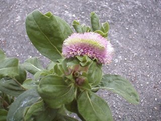 花壇用だけでなくドライフラワーにも利用されるセンニチコウ(千日紅)の、成長点が帯状に変化してしまった株です。