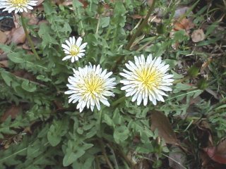 他のタンポポが黄色なのに比べて、白花のため案外と目立つものです。