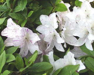 ツツジとしては非常に強健なため、公園の植え込みによく使われるヒラドツツジの絞り咲きです。