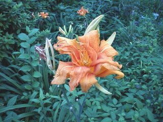 野草のノカンゾウが八重咲きになったもので、観賞用に庭に植えられています。