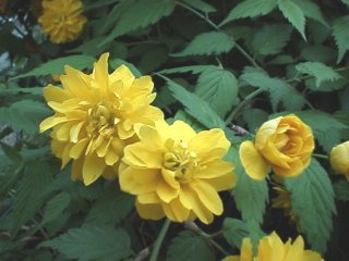ヤマブキは春を彩る花木で基本種の一重咲きもあるのですが、古くから和歌にも詠われた八重咲きの花を見かけることが多いものです。