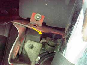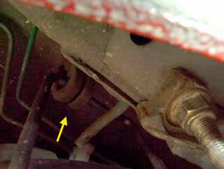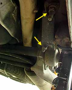 矢印の2本のボルトがトションバー等足廻りを固定していて、これとあとダンパーのボルトも外します。