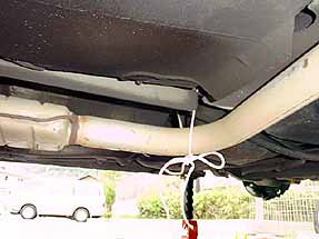さて、マフラーは写真のセンターパイプのジョイントで繋がっているだけで、あとはゴムで吊り下がっています。