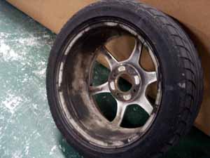 ブーツが破れると中のグリスが飛び散ってホイールの内側がグリスだらけになります。