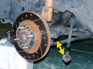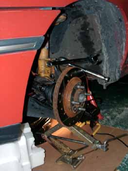 組み直してショックアブソーバー下のボルト2本を締め込む時にはAアームをジャッキで持ち上げた状態でします。