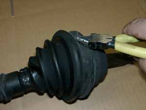 次にブーツバンドを巻きシャフトブーツプライヤーでバンドを締め込みます。