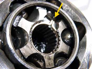 右側のドライブシャフトのインナー側はピンを抜いてドライブシャフトを抜くタイプです。