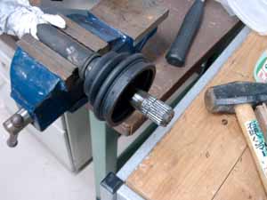 外した左側のシャフトのジョイントベアリング部(トリポ−ドベアリング)にホコリやゴミが着かないようビニール袋などを被せ保護しておきます。