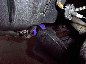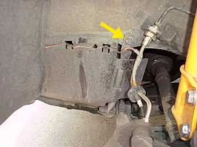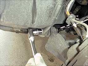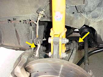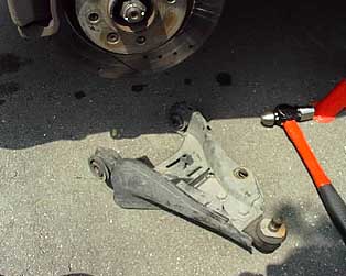 続いてロワアーム先端のボールジョイントのクランプボルトを外し、スタビライザーのジョイント部を外せばロワアームは取り外せます。