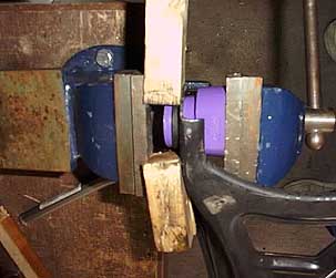 アームを万力に固定し、タガネを使いハンマーで気が遠くなる位叩きます。