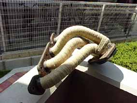 パイプ類を外すときは、触媒などを紐などで固定しておくと、ネジを外した瞬間マフラー等が落ちてくるのを防げます、また落ちてくるとセンサー類の配線が切れることもあるので注意。