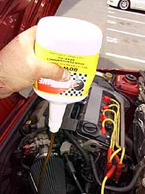 ちょっと漏れる可能性があるので入れ口の下にウエスなどを当てておくと確実です。