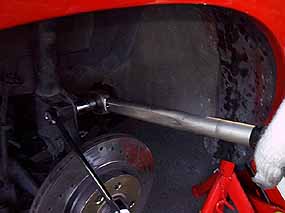 あとはストラット下のボルトとハブ下のボールジョイントのボルトを外します。