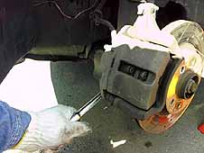 ブレーキキャリパー一式を外します。
