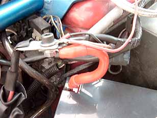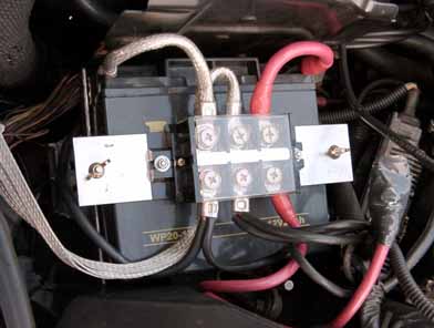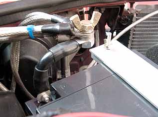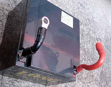 バッテリーの端子は平端子なのでそのままでは接続が出来ないので、短い22スケアのケーブルで端子を出しました。
