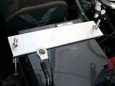 これをバッテリーの底に当たる部分に敷きボルトで固定、あとはバッテリーを押さえ付けて固定する金具を取り付けます。