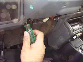 ステアリングの下方のカバーを外します。