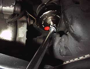 回すだけだとカップレンチが外れてしまうのでカップレンチを押さえ込む力も加えながら回します。