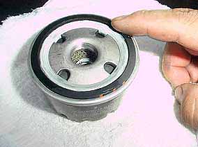 新しいエレメントのゴムパッキンには必ずエンジンオイルを塗っておきます。オイルは新品でも古いものでもOKです。
