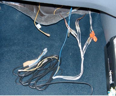この車は足元に外部アンプをつけているので、配線はこんなところにあります。