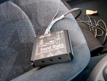スピーカーのジョイント部を外して、シャキットのハーネスをつなぎ、電源を配線して終わり。
