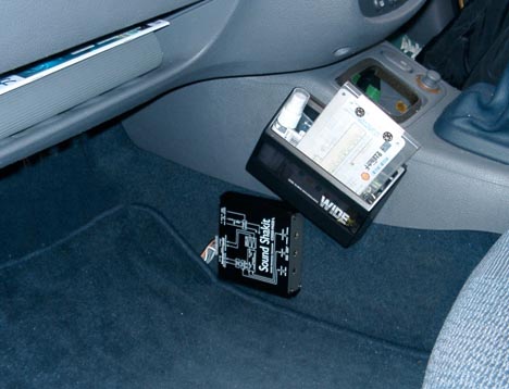 放熱フィン丸出しで見た目もカッコイイので助手席の足元に固定しました。