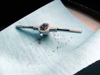 そこに紙ウエスやキッチンペーパーを敷いて切りくず対策をしまします。