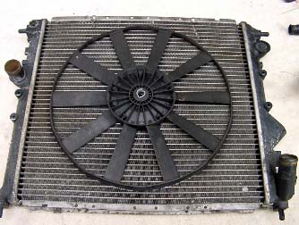 穴の開いたラジエーターと、ファンブレードも削れてバランスが悪くなっている可能性もあるので交換しました。