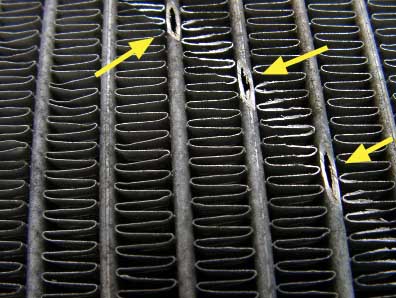 ファンブレードの留めナットが外れ、ファンブレードがラジエーターに突進していってラジエーターを傷つけたみたいです。