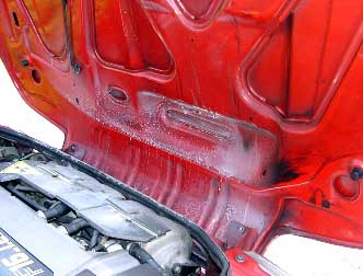 車を安全な場所に移動し確認すると、なんとクーラントが霧状に放射されていました。