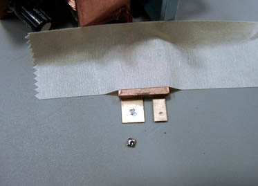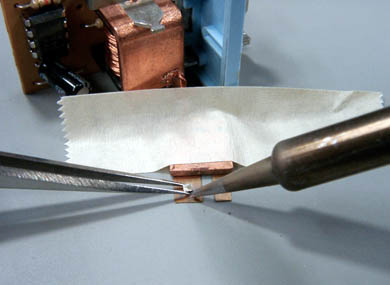 それでは修理します。 接点と接点が取り付くところに予備ハンダをしておきます。 接点をピンセットでつかみながらハンダゴテで熱してくっつけます。
