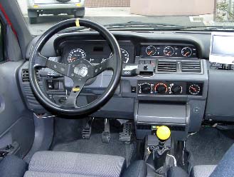 ノーマルステアリングはちょっと遠かったのでディープコーン型のステアリングに変更しています。